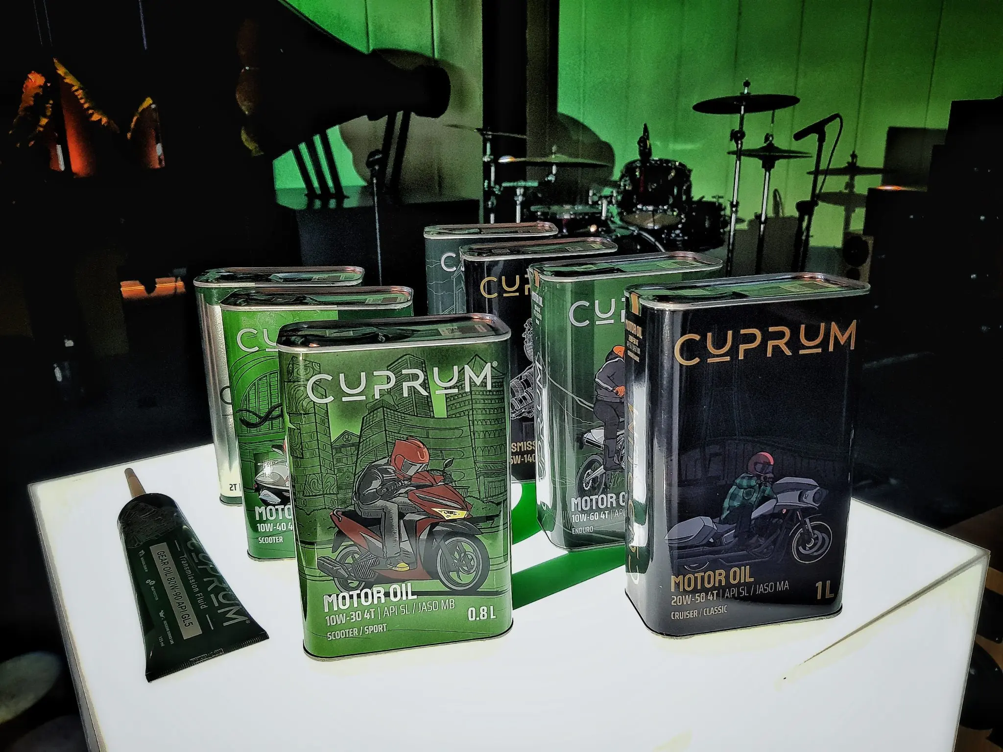 Cuprum Motor Oil hadir dalam beberapa varian yang kompatibel dengan berbagai jenis sepeda motor, mulai dari skuter matik hingga motor sport berkapasitas besar dan motor klasik 2-tak. Semua produk mengacu pada standar internasional SAE, API, dan JASO.