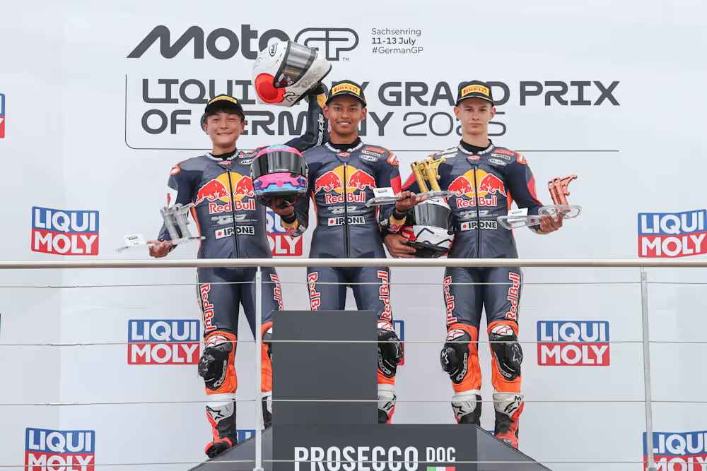 Bukan hanya Veda yang mencuri perhatian. Rekannya sesama pembalap Indonesia, Kiandra Ramadhipa, juga tampil apik. Ia berhasil finis kedua di Race 1 Sachsenring dan nyaris naik podium lagi di Race 2 dengan finis keempat. Penampilan ini menegaskan bahwa generasi muda balap Indonesia benar-benar sedang naik daun di level internasional.
